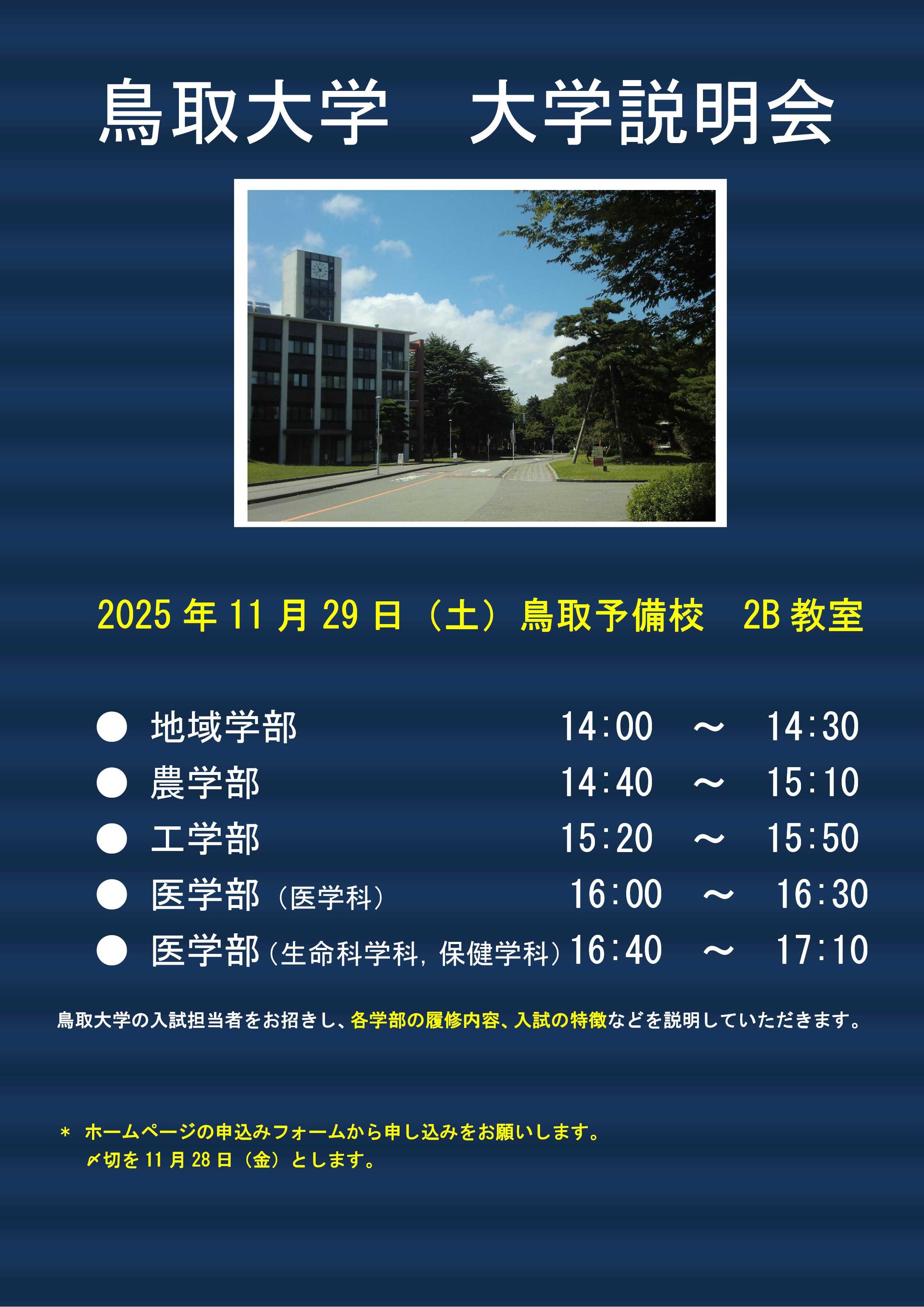 2025年度 鳥取大学説明会 申し込み受付中